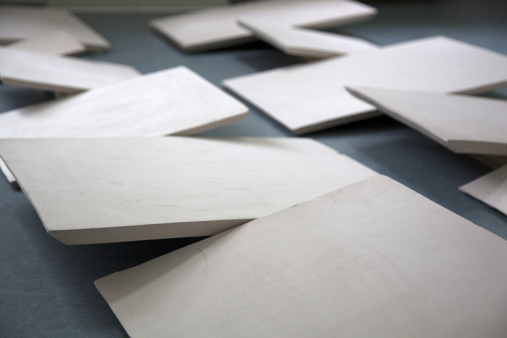 Diana Legel’s subtle interventions influence the perception of space. She constructs corners and edges, fragile elements, into a joint-like composition in space.